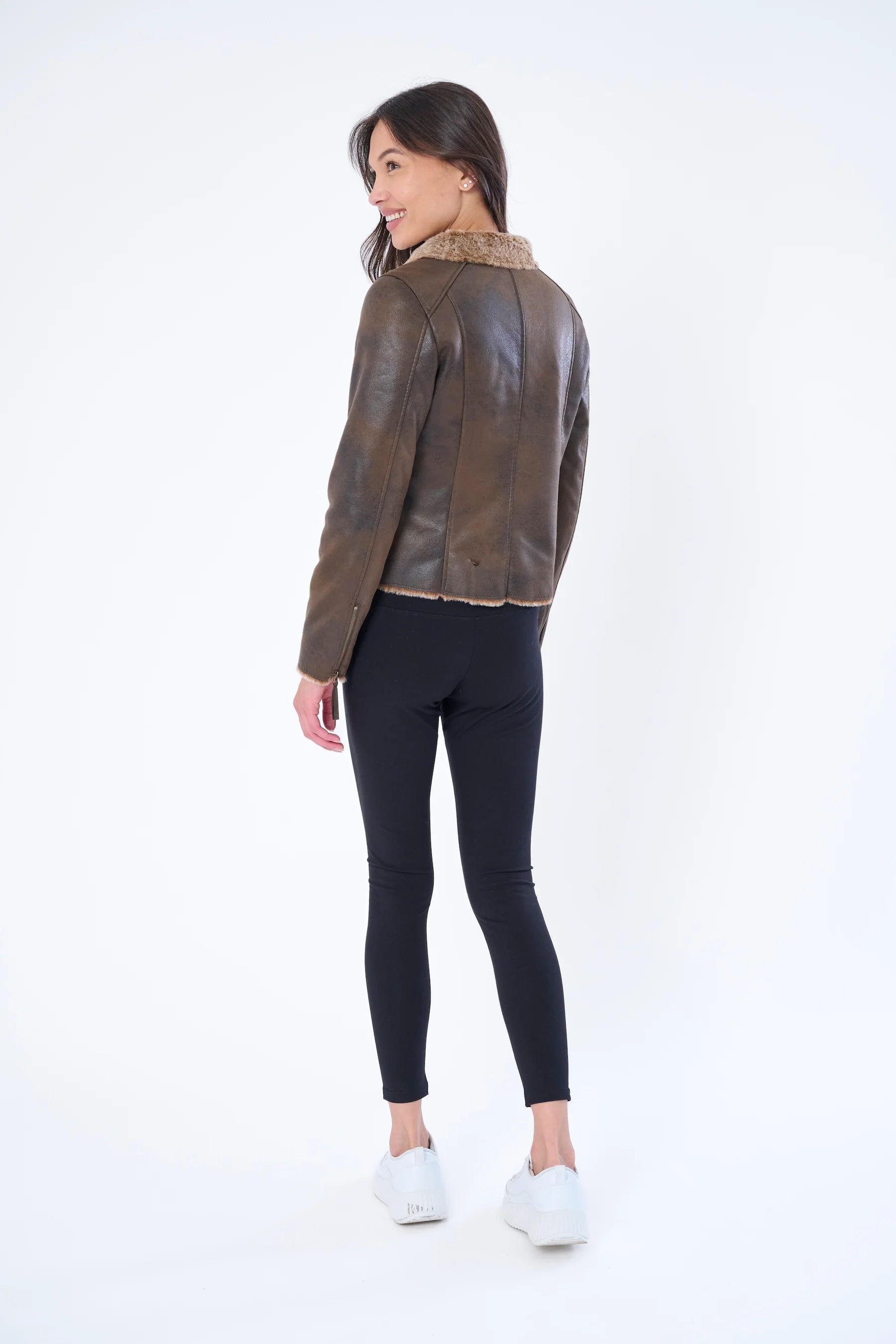 Warm, Cozy, and Hip. Three words that describe MyAnorak's Chinchilla Suede Moto. This popular moto jacket features a plush lining of high quality Faux Fur combined with a shell made of "can't-tell-the-difference" faux suede. Antique brass zippers and pulls add a "vintage quality" to this classic Moto style.