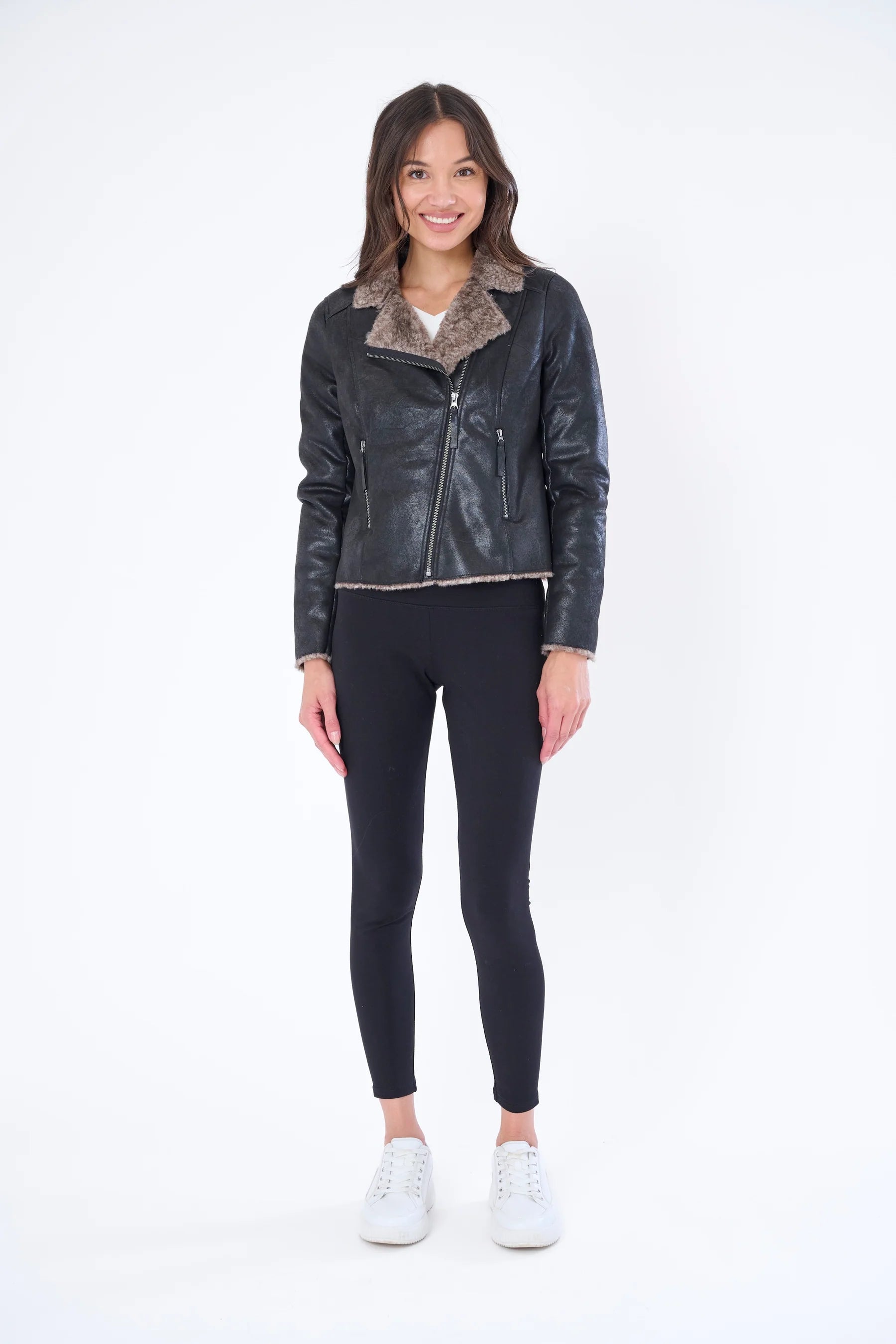Warm, Cozy, and Hip. Three words that describe MyAnorak's Chinchilla Suede Moto. This popular moto jacket features a plush lining of high quality Faux Fur combined with a shell made of "can't-tell-the-difference" faux suede. Antique brass zippers and pulls add a "vintage quality" to this classic Moto style.