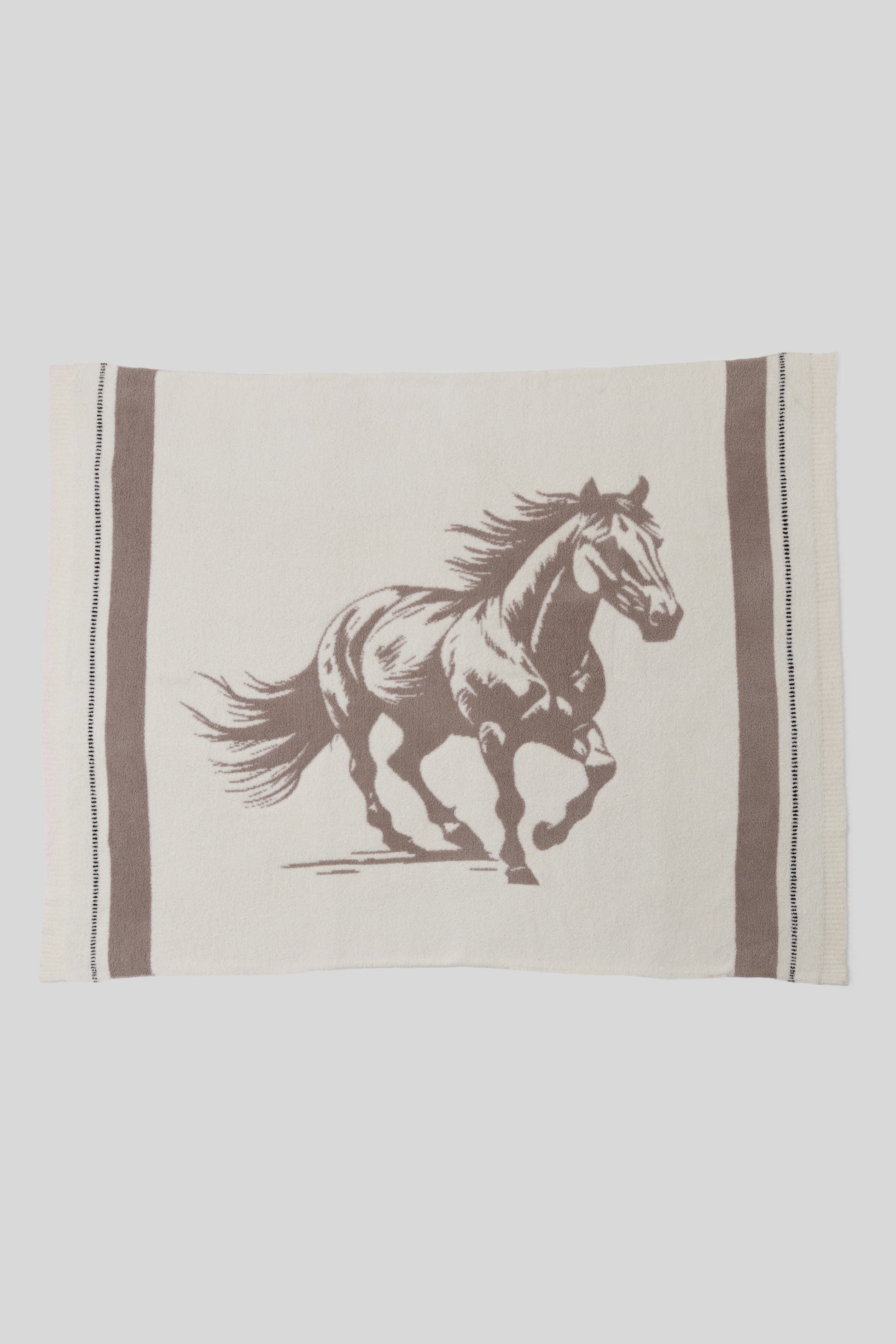 Add a bold yet refined accent to your space with our CozyChic® Stallion Throw, where artistry and comfort meet in stunning silhouette. Knitted in luxurious jacquard, this throw features a striking stallion figure framed by graphic block stripes and subtle dashed line details at both ends. Perfect for equestrian lovers or those seeking a unique statement piece, the throw is finished with ribbed hems and crafted from our famously soft CozyChic® fabirc. Measures 54" x 72". Imported.