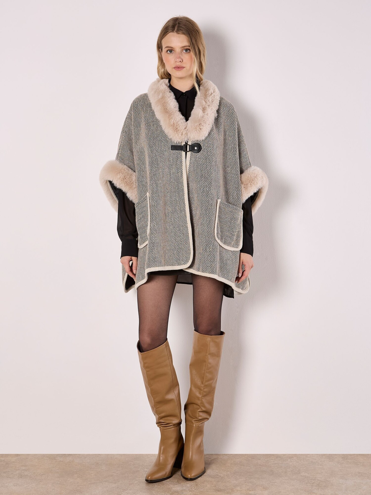 Cozy and stylish, this cape boasts a heritage texture and super-soft faux fur trims and lining. In a relaxed fit, it's finished with patch pockets and a buckle and snap button fastening.