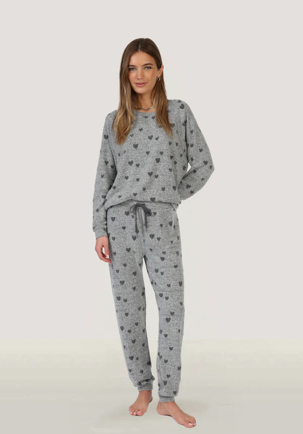 Slip into effortless comfort with our Hang Out Heart Jogger, crafted from soft heather hacci jersey that feels as good as it looks. The cozy printed design adds personality to your loungewear rotation, making these joggers perfect for relaxed days at home or casual outings. The breathable fabric moves with you while maintaining its shape, delivering that ideal balance between style and comfort. Whether you're working from home or running errands, these joggers are your go-to choice for laid-back sophistication.