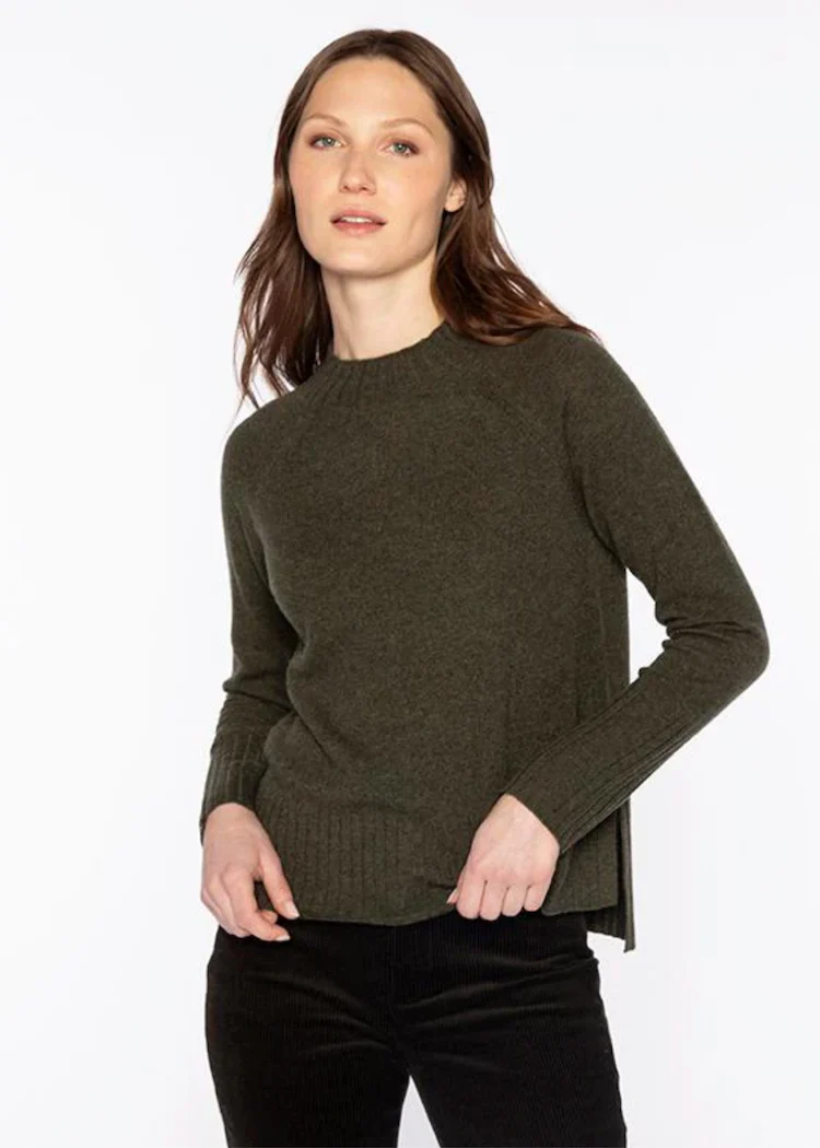 Discover the exceptional softness of pure cashmere with the High Low Rib Trim Funnel top. Designed for versatile styling, it transitions seamlessly from a refined layered look during the day to a standalone piece that exudes understated evening glamour. This timeless cashmere top combines effortless elegance with lasting quality, making it a sophisticated addition to any wardrobe.