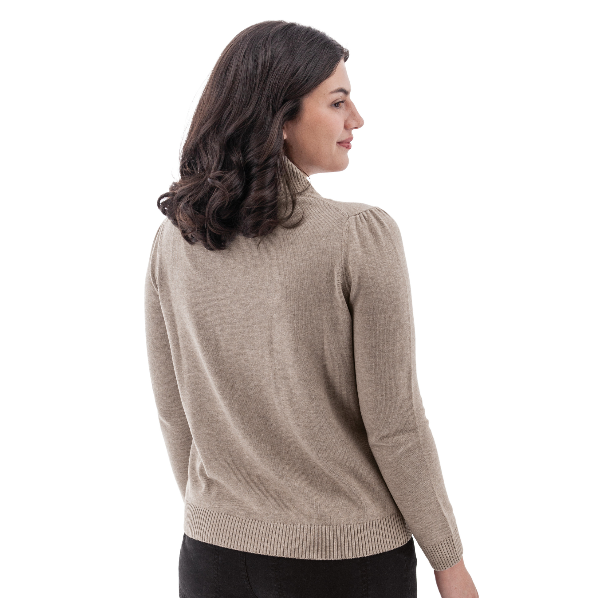 As day fades into night and the sky turns deep indigo, there's a certain kind of magic in the air-the Twilight Mock Neck Sweater reflects that same quiet elegance. With its gently fitted silhouette and soft cashmere-blend knit, this sweater is the perfect balance of cozy and refined. The mock neck elevates this sweater beautifully, while the textured cable knit adds depth and dimension to the body in the best way. Like the soft glow of twilight, this sweater feels effortless yet unforgettable.