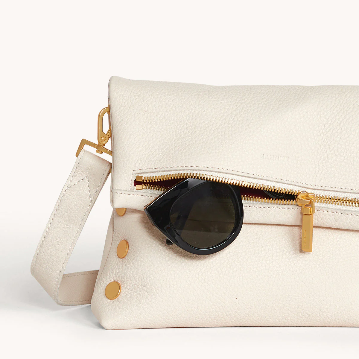 - Crafted with classic pebbled leather in a warm white hue